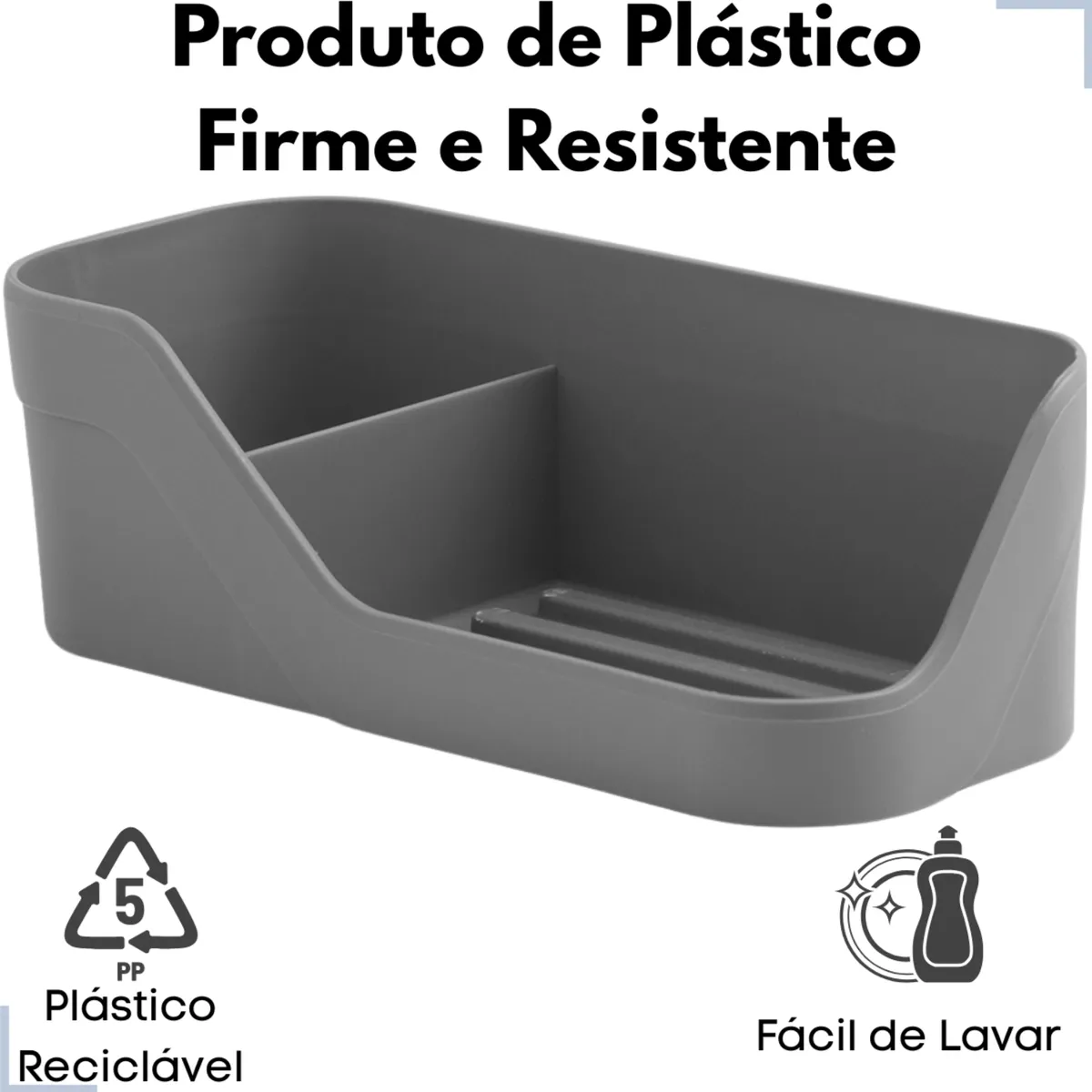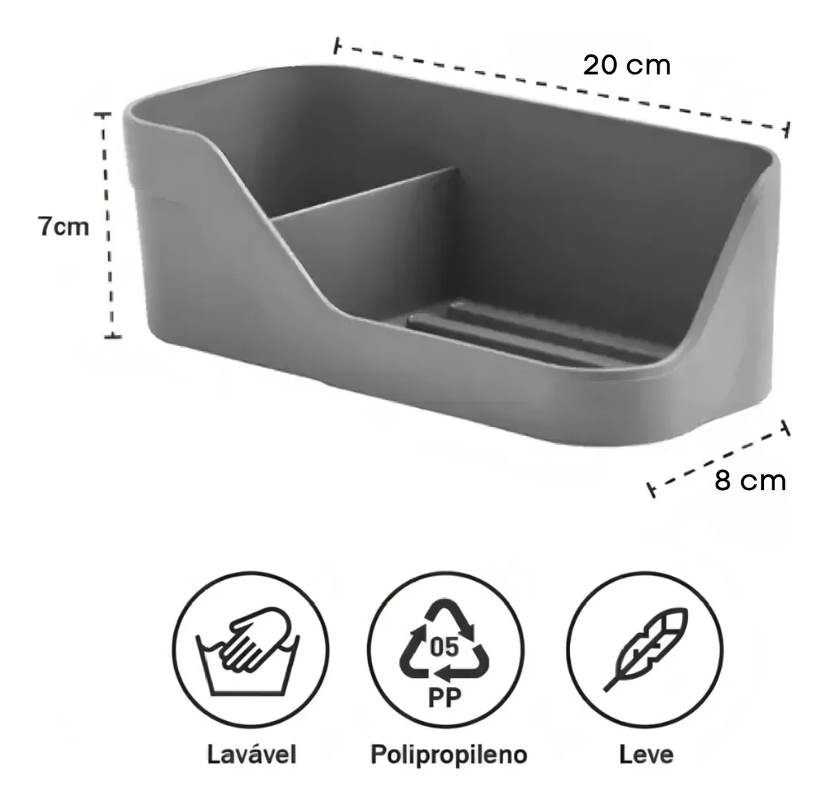 Com um design moderno e funcional, ele permite acomodar detergente, esponja, sabão e outros pequenos acessórios, evitando bagunça e acúmulo de água na pia.