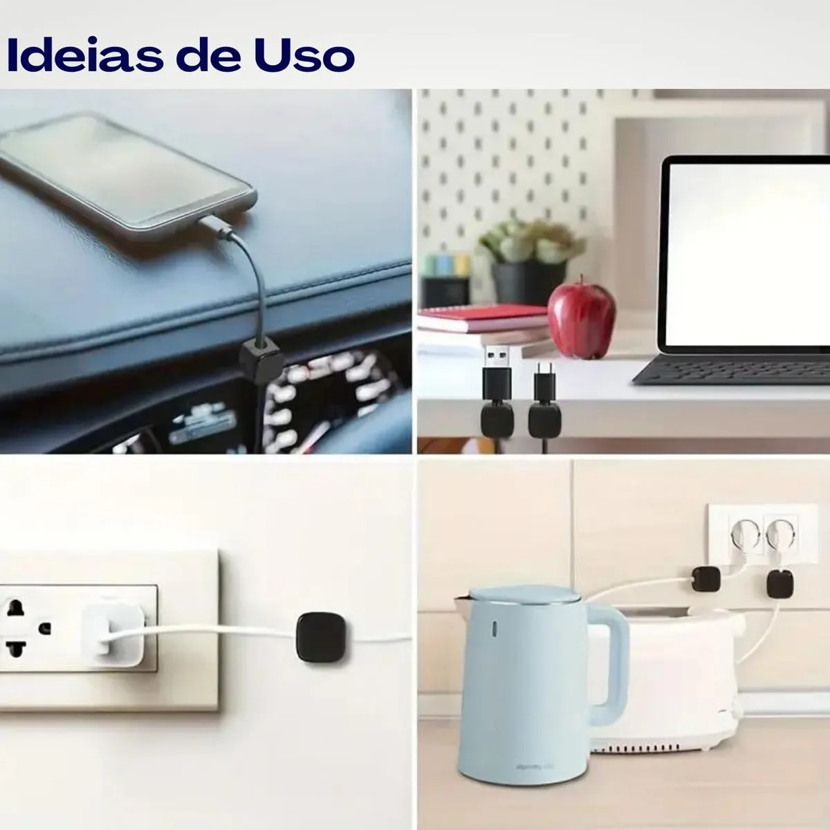 Com este organizador magnético de cabos, você mantém carregadores, cabos USB e fones sempre organizados e ao alcance das mãos.